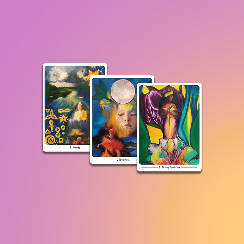 The accompanying Mystics Oracle Booklet offers insights including a description of each card’s energy and various card spreads to support your experience.